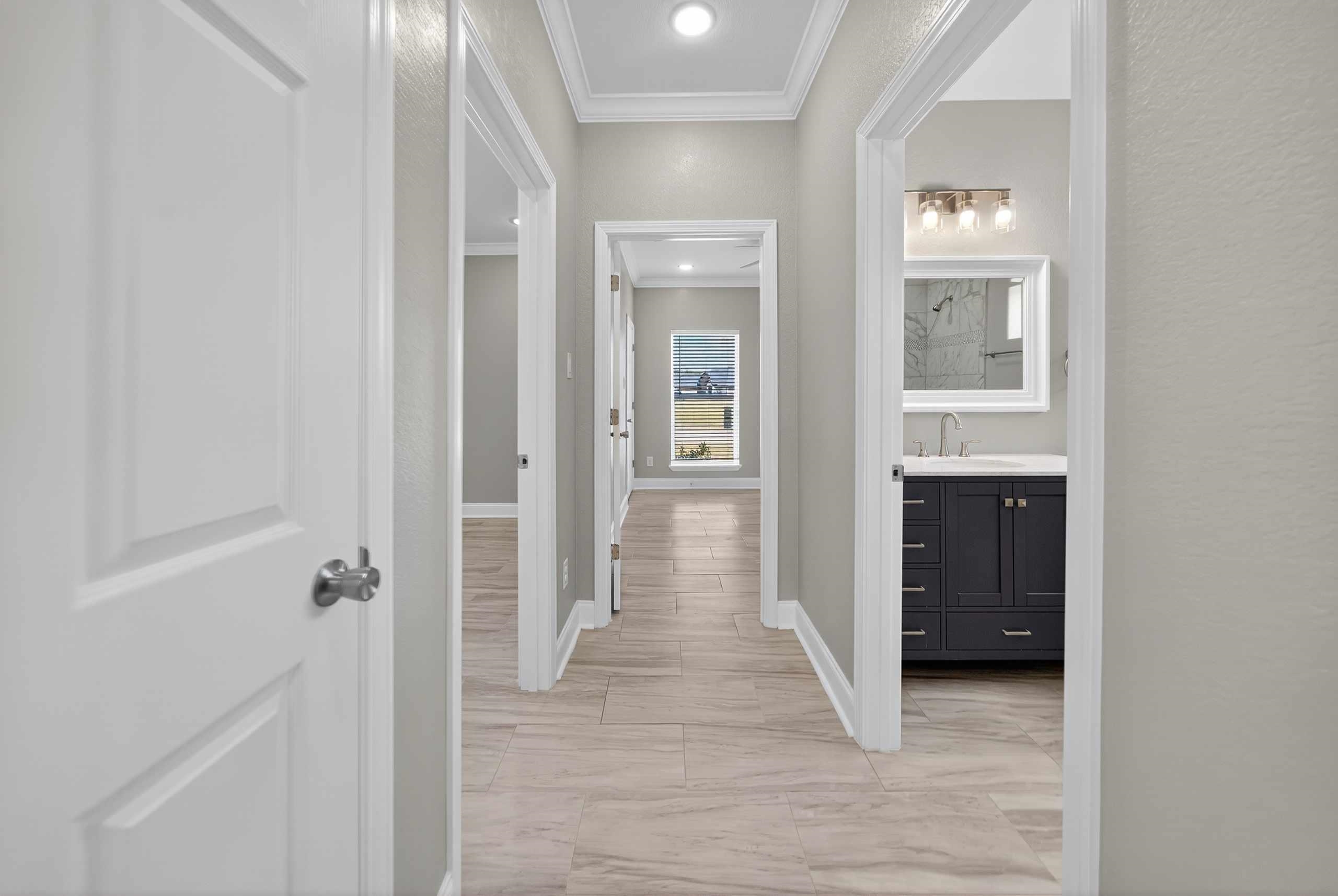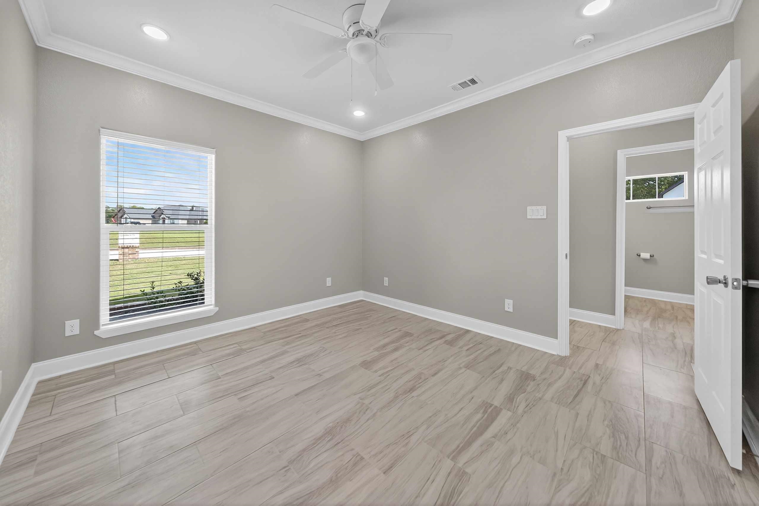 $10,000.00 Buyer Bonus if under contract by January 31st, 2026. Welcome to Your Lindale Dream Home! Step into a thoughtfully designed open-concept living space adorned with high-quality finishes, including tiled floors and crown molding. This home offers four spacious bedrooms, arranged with privacy in mind. The primary suite is a true retreat, featuring a spa-inspired bathroom with a separate shower and a generous walk-in closet. A split layout also provides an additional guest room tucked away from the other bedrooms—ideal for visitors or multigenerational living. The chef’s kitchen is equipped with granite countertops, a farmhouse sink, stainless steel appliances, and a refrigerator that remains with the home. A dedicated laundry room adds convenience with ample cabinetry and a sink. Energy efficiency is built in with spray foam insulation, while the exterior showcases timeless curb appeal with all-brick construction and stone accents. Outside, enjoy a large backyard on a corner lot, perfect for entertaining, play, or relaxing evenings. Don’t miss this opportunity to call Lindale home—where modern comfort meets a prime location. Some rooms have been virtually staged.